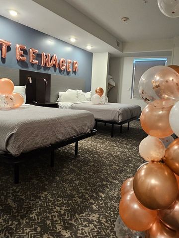 Turn any hotel room into a birthday dream suite! This stylish setup includes whimsical teepee tents, soft lighting, and chic dΓ©cor to create a cozy, upscale sleepover experience. Perfect for celebrating in styleβjust check in and let the fun begin!