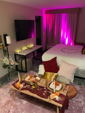 Experience the ultimate romantic escape as I transform your hotel room into a private paradise β complete with an elegant picnic setup, candlelight glow, soft mood lighting, and rose petals cascading across the bed and floor. Add charcuterie and wine for the ultimate experience. Book now with a $50 deposit.
